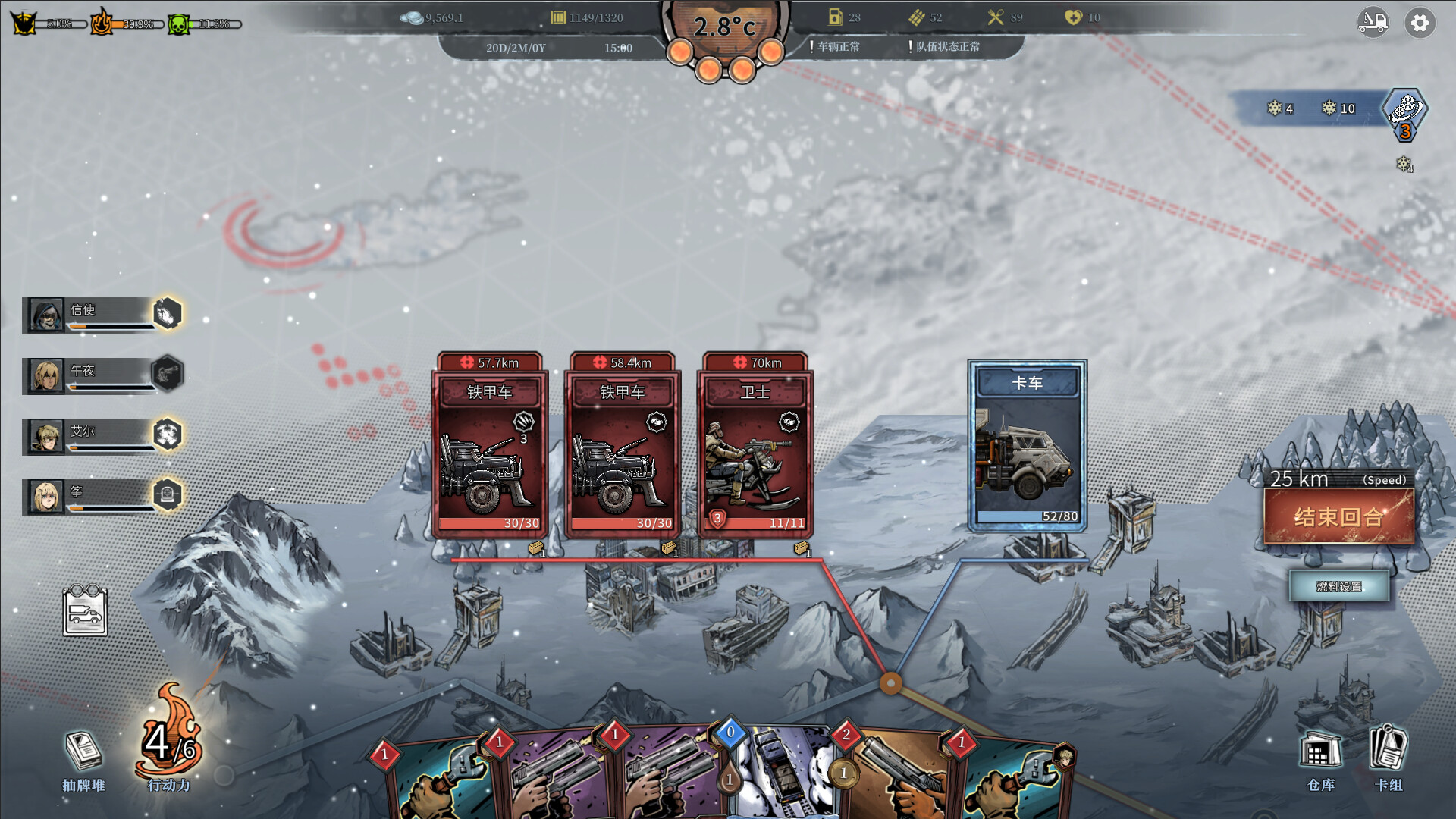 雪原餘燼是一款末世廢土題材的卡牌跑商遊戲。